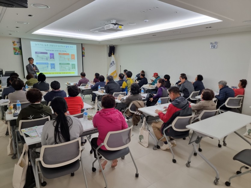 10월28일 화요일에 시작한 영암 농산물 기획생산체계 구축을 위해 영암 군 내에서 농사를 짓는 농산물 생산자 3기 교육에는 총 35명 신청하였으며 1회차 교육에는 29명 참석했습니다.